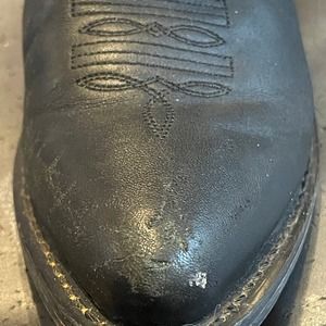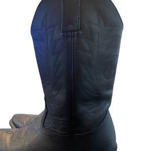 Womans leather like new Durango Western cowboy boots. These boots are in great condition. There is some minor scuffing but nothing that a bit of shoe polish won’t fix up. The stitching is really nice. Size 10.