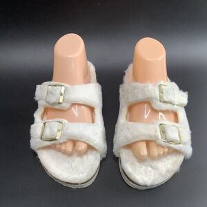 Womans Esmara Flats Sandals Slip On Shoes Off White Gold Tone Buckle EUR 39 US 8