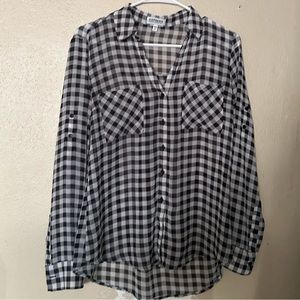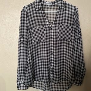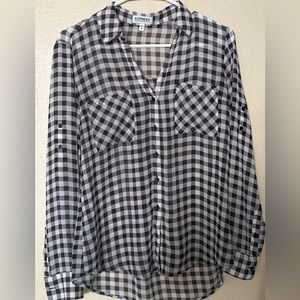 Woman’s Black & White Checkered Express Button Down Shirt Size~Medium