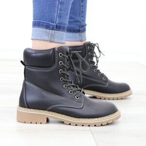 Woman's Faux Leather Lug-Sole Combat Ankle Boots