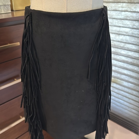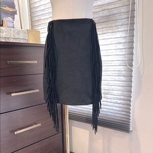 Woman's Faux Suede Black Fringe Stretch Mini Skirt. Size Small
