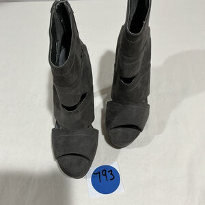 Woman’s Forever 21 Gray Faux Suede Size 7 Platform Strappy Open Toe Ankle Boots