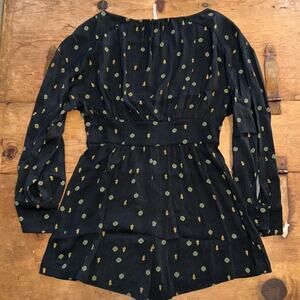 Woman’s Free People Love Grows Front Button Long Sleeve Black Romper Size Small