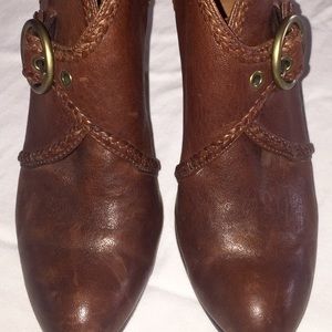 Size 9 Awesome, brown, leather, ankle boots by FRYE. Gold buckle. 4" heel. Great used condition (barely used). Make an offer!