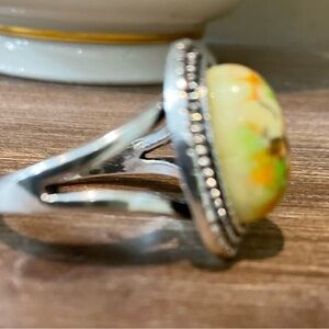 Check Out This Handmade Vintage Boho Green Gemstone Silver Tone Ring .
