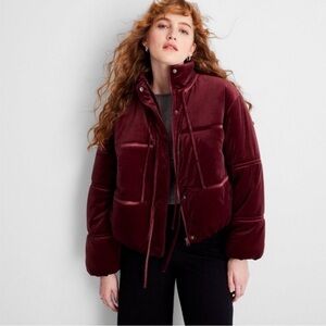 Stay warm and stylish with this elegant burgundy puffer jacket. Perfect for chilly days, it combines comfort with a chic design.