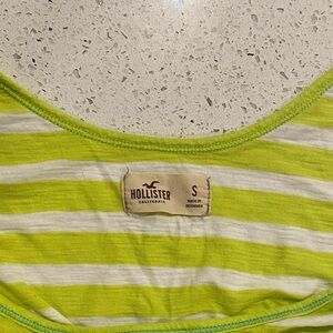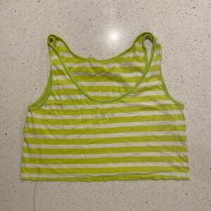 Stylish green and white striped cropped tank top. Features a small blue pocket. Perfect for casual wear. Excellent condition and closet kept in a smoke free home.
