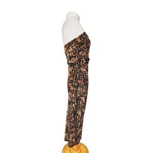 Womans Hot & Delicious Mesh Animal Print Strapless Maxi dress Size Small Tan