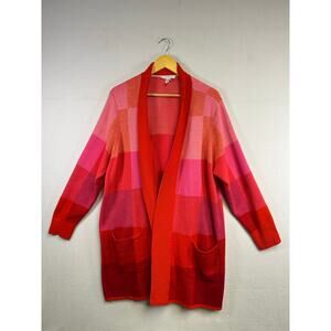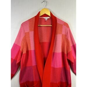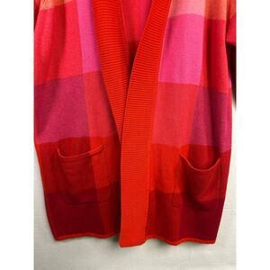 Woman's Isaac Mizrahi Live Red Plaid Color Block Sweater Cardigan 2X Cozy