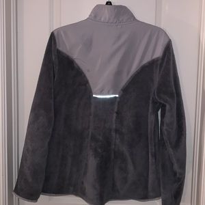 Woman’s Jacket Light Gray T the top of jacket, dark gray at bottom. Side pocket’s fury on the dark gray area. Size XXL but I feel it fits like an XL