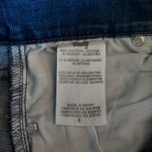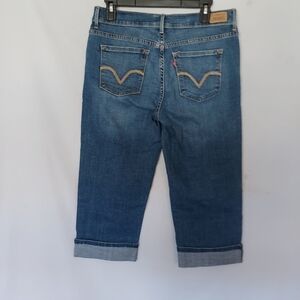 These are Levi's blue jeans capris in a size 6. The color blue makes it easy to wear any color top. They would look nice to wear them casually or to go to run errands. The inseam is 19 inches and the waist to the bottom is 29 inches.