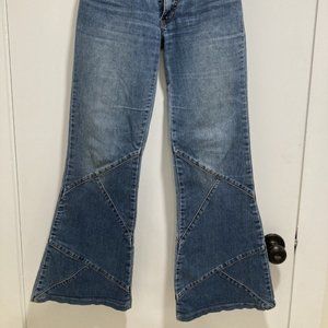 Mid Rise Medium Wash Horse Bit 70s Flare Jeans Size S 29" inseam