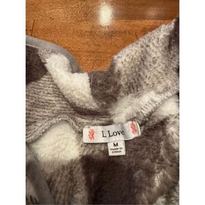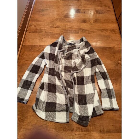 Woman’s L love cozy cardigan checkered size medium. Gently worn. It is ultra soft extremely comfortable. Smoke-free and clean home. No holes rips or stains.