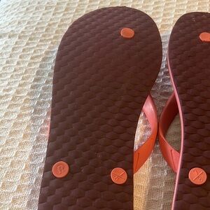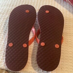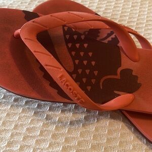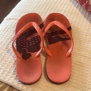 Worn twice the ladies Coral and brown size L 9/10 Lacoste Rubber Flip Flops.