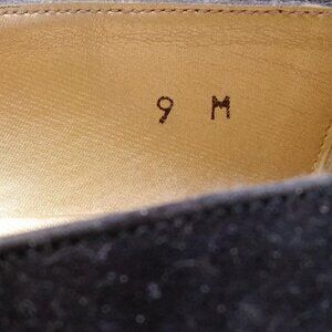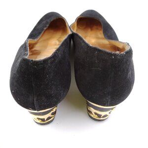 Womens Black Suede Round Toe Slip On Casual Gold Panther Pump Heel Size 9M