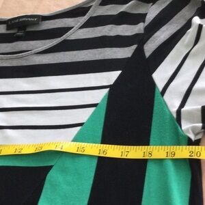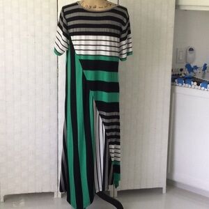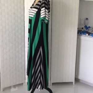 Woman’s Lane Bryant pullover Dress size 14 to 16 short sleeves Asymmetrical Hem color green & Black washable.