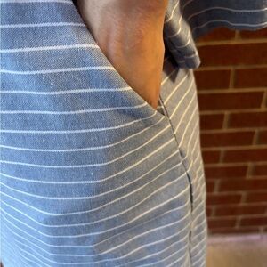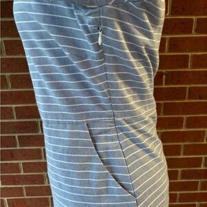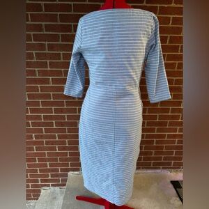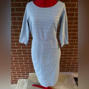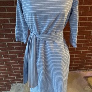 Woman’s Large Blue and White Tie Front Sheath Dress with Dolman Sleeves