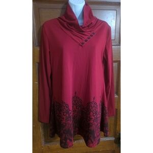 Woman's Long Sleeve Button Cowl Neck Floral Printed Tunic