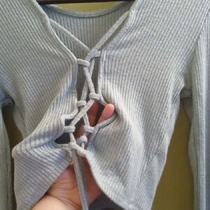 Womans M Garage Blue Tie Back Crop Blouse Lightweight Long Sleeved