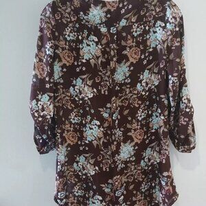 Womans Medium Floral Blouse 3/4 Adjustable Sleeves