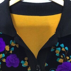 Woman's Multicolor Button Up Floral Design Long Sleeve Collared Cardigan Sweater