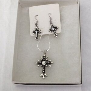 Woman’s Necklace & Pierced Earring Set color sliver & black with rhinestone #22