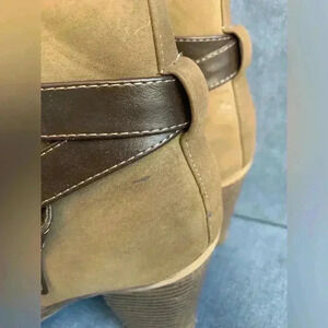 Woman’s New@titude Brown Suede Strappy Block Heel Ankle Zip Booties Size 9.5
