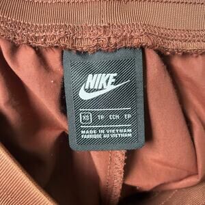Woven recycled nylon shorts in brown. High-rise. Two-pocket styling. Drawstring at elasticized waistband. Swoosh embroidered in black at front. Vent with press-stud fastening at cuffs. Tonal hardware. Supplier color: Dark Pony/Black