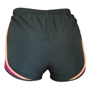 Woman’s Nike Tempo Dry Core 3” Running Shorts: Grey dri-fit running shorts with plum mesh and peach trim and draw string waistline. Cute and comfortable perfect for working out or sports, hardly worn and in great condition!