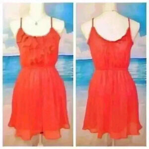 Woman's ORANGE DRESS Juniors LINED Lightweight Stretch Waist FLOWY size Med