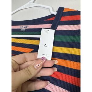 The product is a women's Old Navy pajama set in a medium tall size, featuring a multicolor shirt. This set is designed specifically for taller women, offering a comfortable and stylish option for sleepwear. With the reputable brand of Old Navy, this pajama set is sure to be of quality and a fashionable addition to any woman's wardrobe.