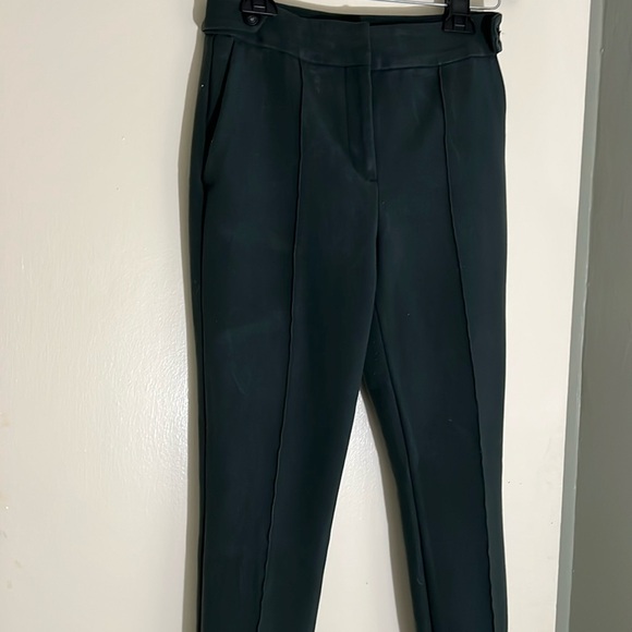 Emerald green pants, pockets on sides,62% Polyester, 34% Rayon, 4% Spandex