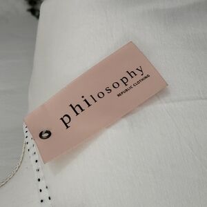 Woman's Philosophy Rebublic white v neck polka-dot blouse size small
