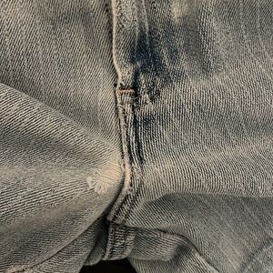 Pre owned frayed distressed worn striped soft stretchy frayed cut off Jean shorts see photos for all distressed areas longer style