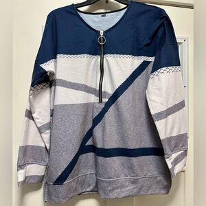 Woman’s Quarter-Zip Top. Blue White (217)