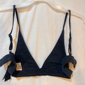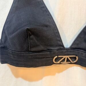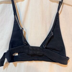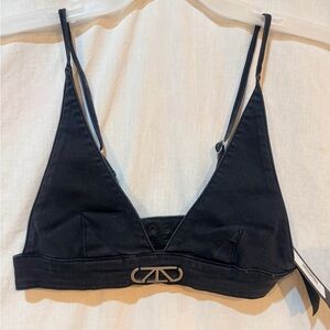 NWT Woman’s RTA denim bra, color is Charcoal. Adjustable shoulder straps, and adjustable snap closure in back , size Medium ptp is 14.5 to 16” and stretches comfortably to 18”