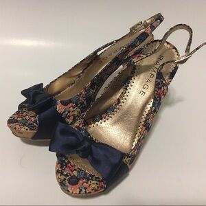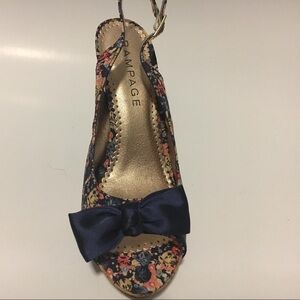 Woman’s Rampage floral open toe heels size 8M, in good used condition. Blue bows. Adjustable straps. Cork heels. #6-123