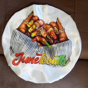 Woman's Red Yellow Green Juneteenth Nails Custom Design Satin Hair Bonnets Scarf