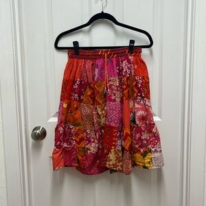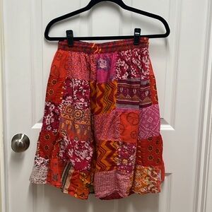 Woman’s Red/Orange Boho Patchwork Miniskirt‎