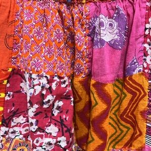 One size fits most, elastic waistband with bell ties, patchwork style, fully lined