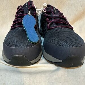 NWT Woman’s Reebok Astroride Black with Grey soles, purple & neon yellow inside, memory foam insole, black & purple laces