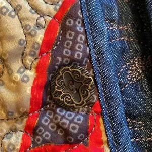Woman’s Reversible Quilted Jacket Coat. Denim And Floral. Size L/XL. No size/fabric tags. See measurements for sizing. Great pre owned condition. Pockets and buttons on each side. Very classy jacket! Great for travel as you can get two separate looks from one piece. Beautiful, quality coat.