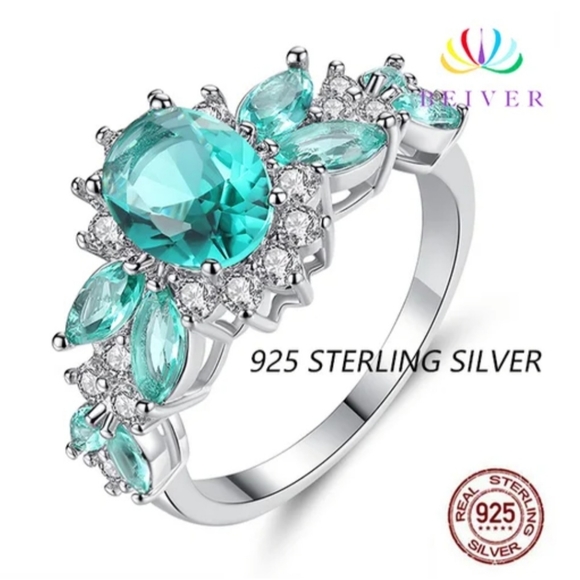 925 sterling silver Green crystal Oval shape woman's Ring size 7" .