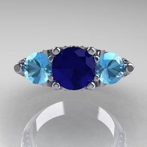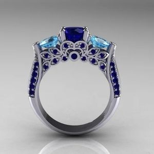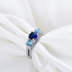 2021 New blue crystal full Diamond white gold ring sizes 8" 9" 10" .