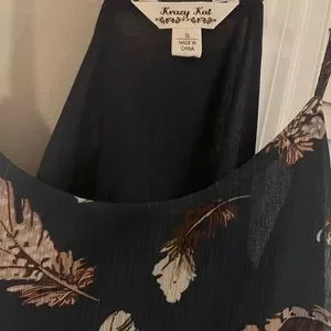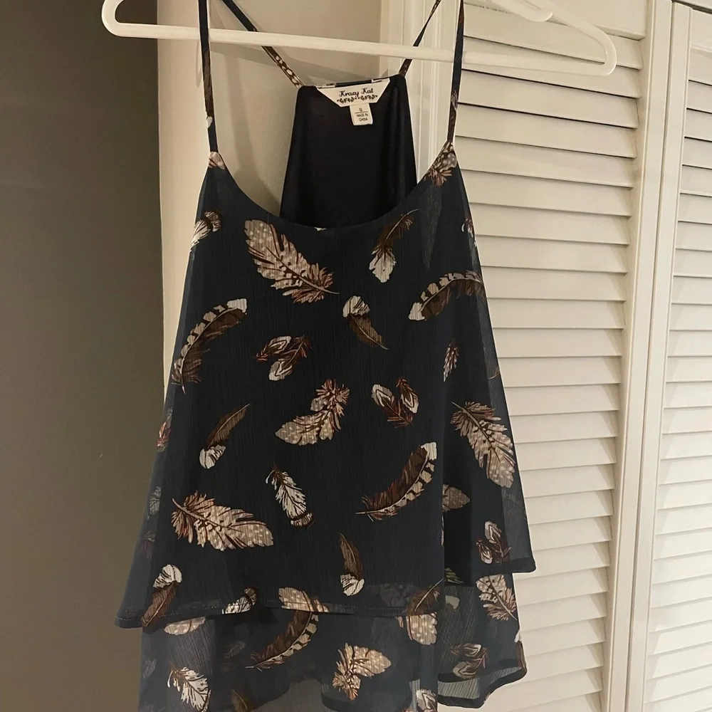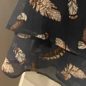 Feather print Tiered ruffles Navy NWOT pet/smoke free home