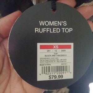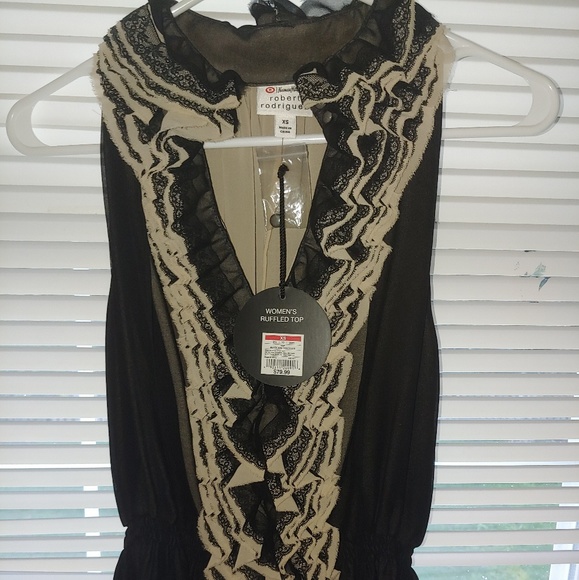 Neiman Marcus for Target Robert Rodriguez Ruffled Top. Size XS. New with Tags. Black and Tan.