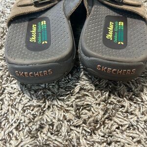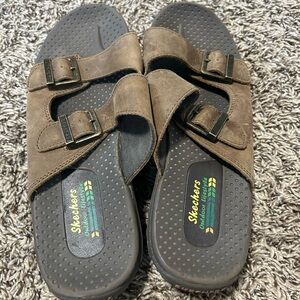 Woman's SKETCHERS Brown Adjustable Double Strap Slide Sandals Size 9.