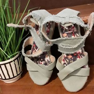 Dungaree Material ,ankle strap Espadrilles NEVER EVER BEEN WORN,POWERED BLUE STILL IS EXCELLENT !!!