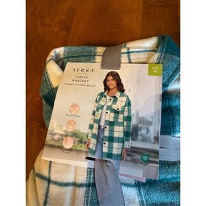 Woman’s Serra snacket size medium brand new teal and white checkered. No holes rips or stains. Smoke free and clean home. Bought this, but never ended up wearing it.