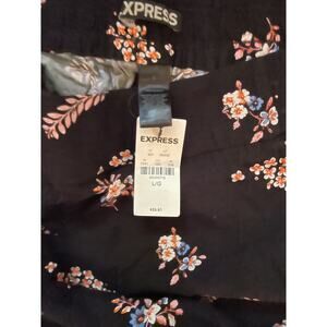 Two Pair of Women's shorts - Express Black with Pink and Blue Flowers NWT - Rayon with Side Pockets and Pre-Owned Elastic waist band Size Large . Waist is 29 across and 12 inches long with 2 Side Pockets .